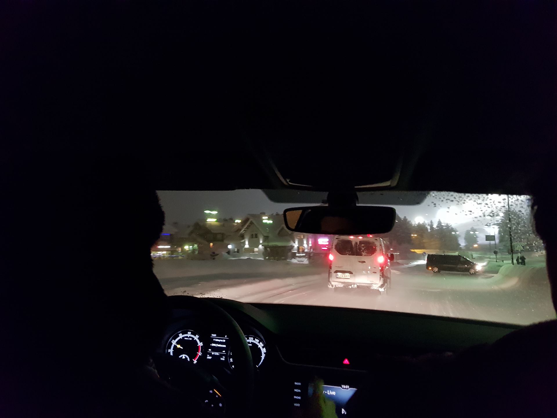 Als alte Hasen sind wir schon sehr gut organisiert und steigen umgehend in unser gemietetes Auto für unseren Aufenthalt. Vollgeladen mit unserem Gepäck geht’s durch die verschneite Nacht nach Levi.