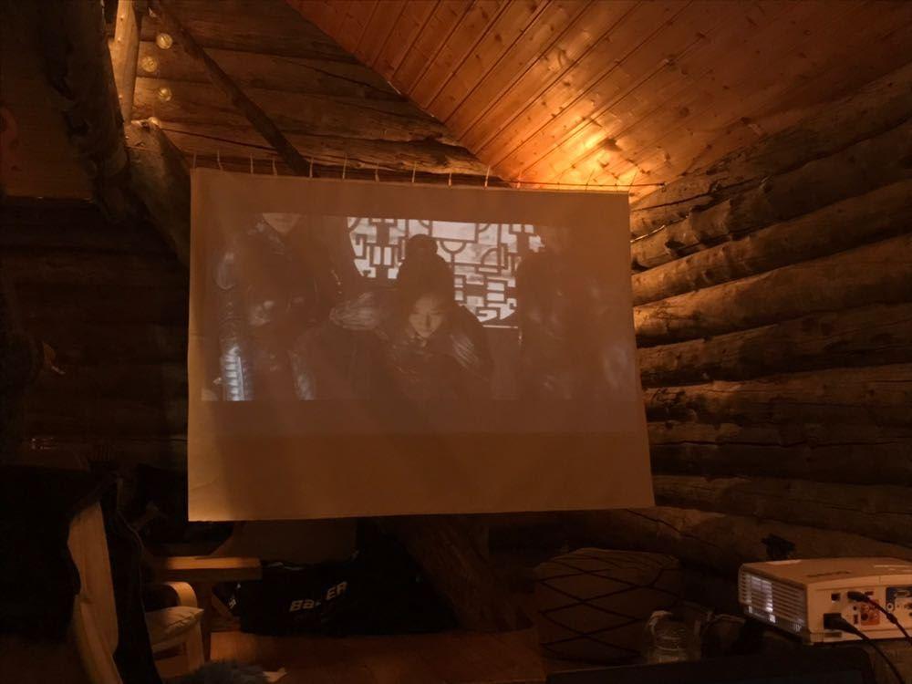 Als jeder sein Schlafplatz gefunden hat, beginnen wir auch noch unser technisches Equipment aufzubauen, damit es reicht noch einen ersten Kelohovi-Movie zu schauen, so quasi als Test, mit der neuen Kino-Leinwand. Auch hier noch ein sehr grosses Dankeschön an Peter und Sabine Pfändler.