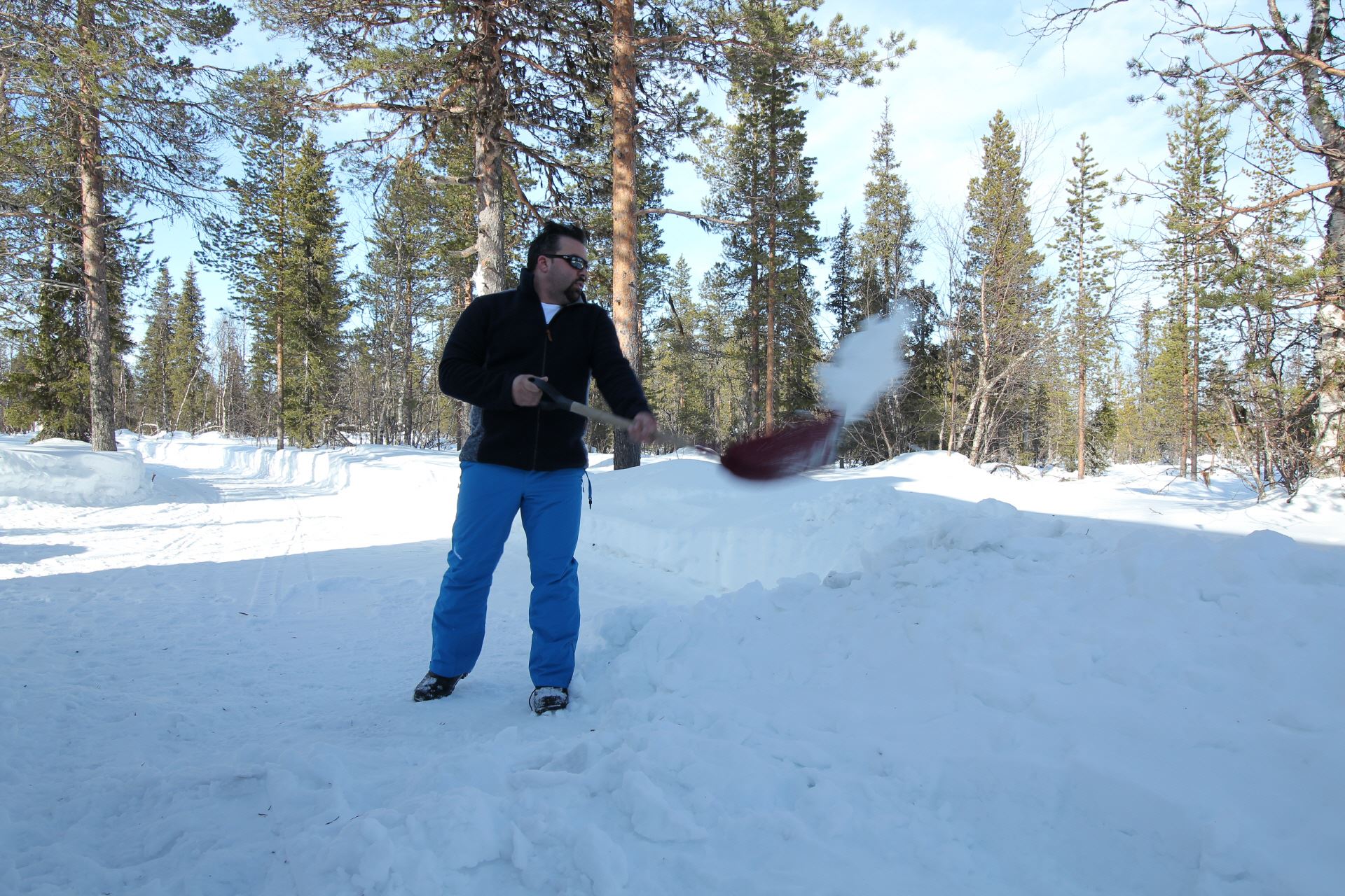 Geschmeckt hat es allemal, und seinen Sinn nicht verfehlt. Marcel beginnt schon mal mit der Schwerstarbeit und räumt den Weg frei damit wir nach dem Einkauf direkt neben das Haus fahren können.