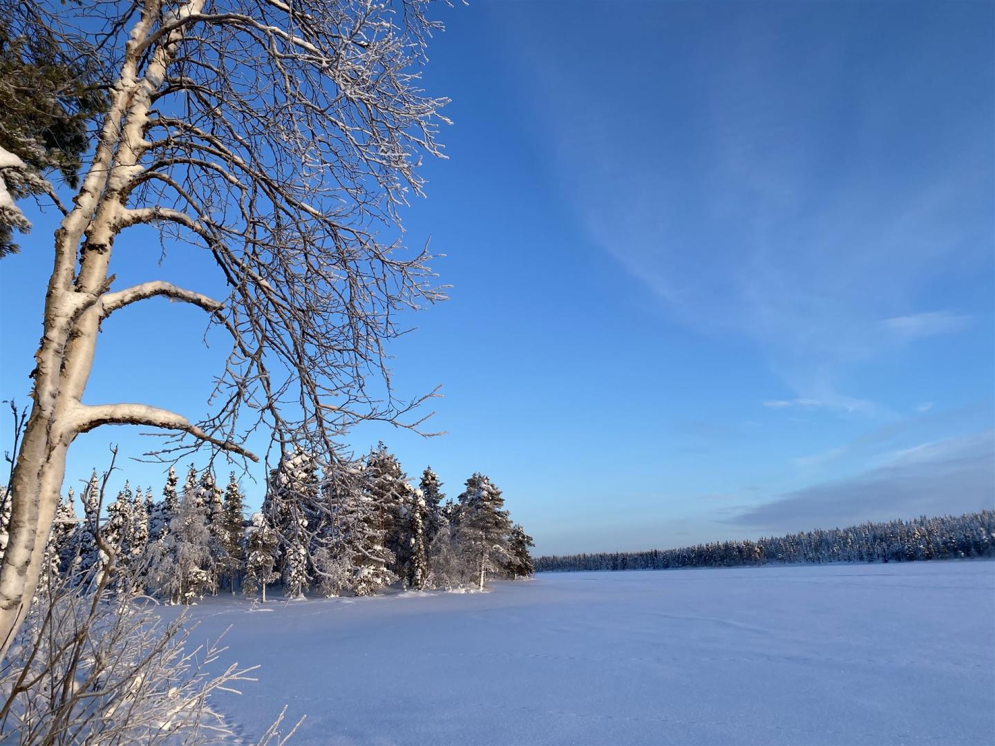 Das erste Erwachen im Kelohovi ist wie Weihnachten und Ostern zusammen. Der Blick aus dem Fenster, der Geschmack vom Feuer und Holz, blendende Sonne, Schnee soweit das Auge reicht. Das gibt uns die definitive Sicherheit wieder im Paradies zu sein.