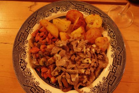Das Abendessen welches unser Chefkoch Ivo heute zauberte stand dem Film in nichts nach: Ein wunderbar schmackhaftes Geschnetzeltes mit Bratkartoffeln, begleitet von Rüebli und Champignons. Dazu hat uns unser Sommilier einen Masi Campofiorin Jahrgang 2013 gereicht.