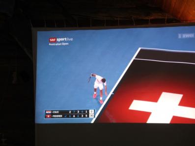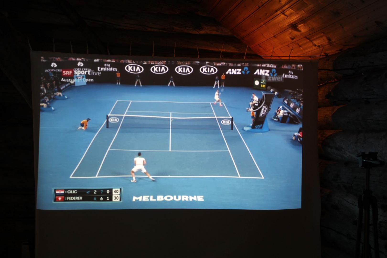 Pünktlich 09:30 Uhr sitzen wir vor unserer Leinwand, im tief verschneiten Salanki. Im lappländischen Nirgendwo, mit einer unglaublichen Technik, dürfen wir uns über Proxy und VPN auf SRF das Finale Tennisspiel von Federer vs. Cilic anschauen.