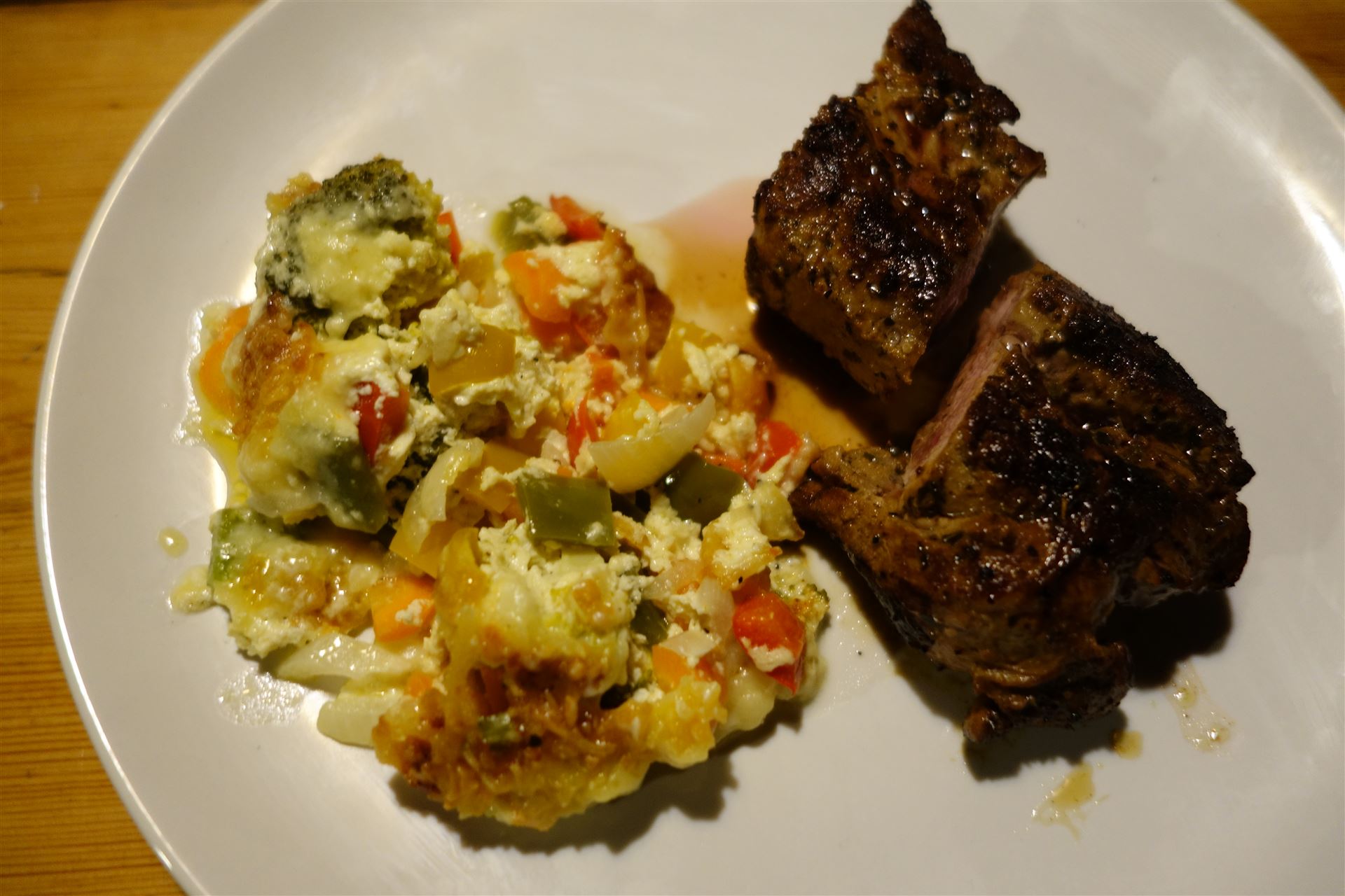 Wir unterbrechen die Staffel kurz, damit wir unsere heutige Hauptmahlzeit zubereiten können. Schweinefilet vom heissen Stein mit einem Gemüsegratin. Das Menu ist einmal mehr vorzüglich und wir geniessen es mit einem feinen Tropfen Chianti.