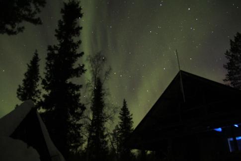Auf dem Rückweg in unsere Stube werden wir aber wieder aufgehalten, auch dieses Mal vom Nordlicht. Wir waren schon etliche Mal hier in Lappland. Was uns aber der diesjährige finnische Himmel schenkt ist unglaublich.