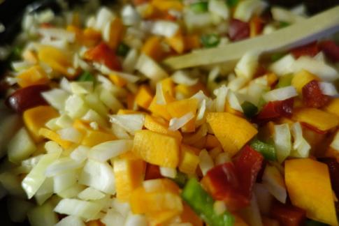 Karotten, Zwiebeln, Knoblauch, Zucchetti, Peperoni, Pilze und vieles mehr, werden mit Käse übersäht und bereitgestellt für den Ofen.