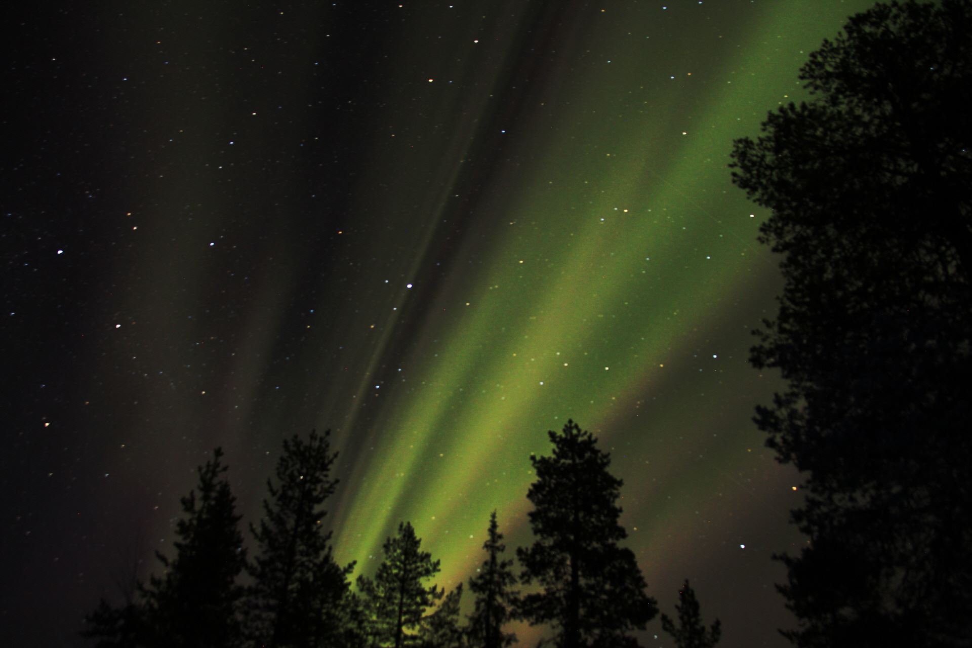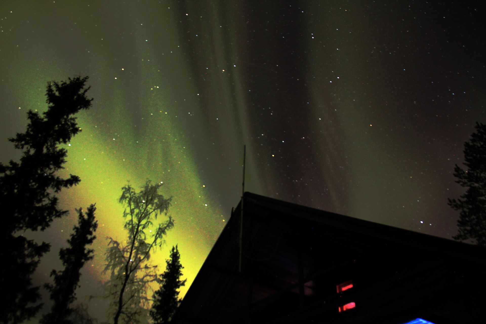 Eigentlich wollen wir uns ins Bett legen, wäre da nicht wieder das Schauspiel des Nordlichtes am Himmel.
