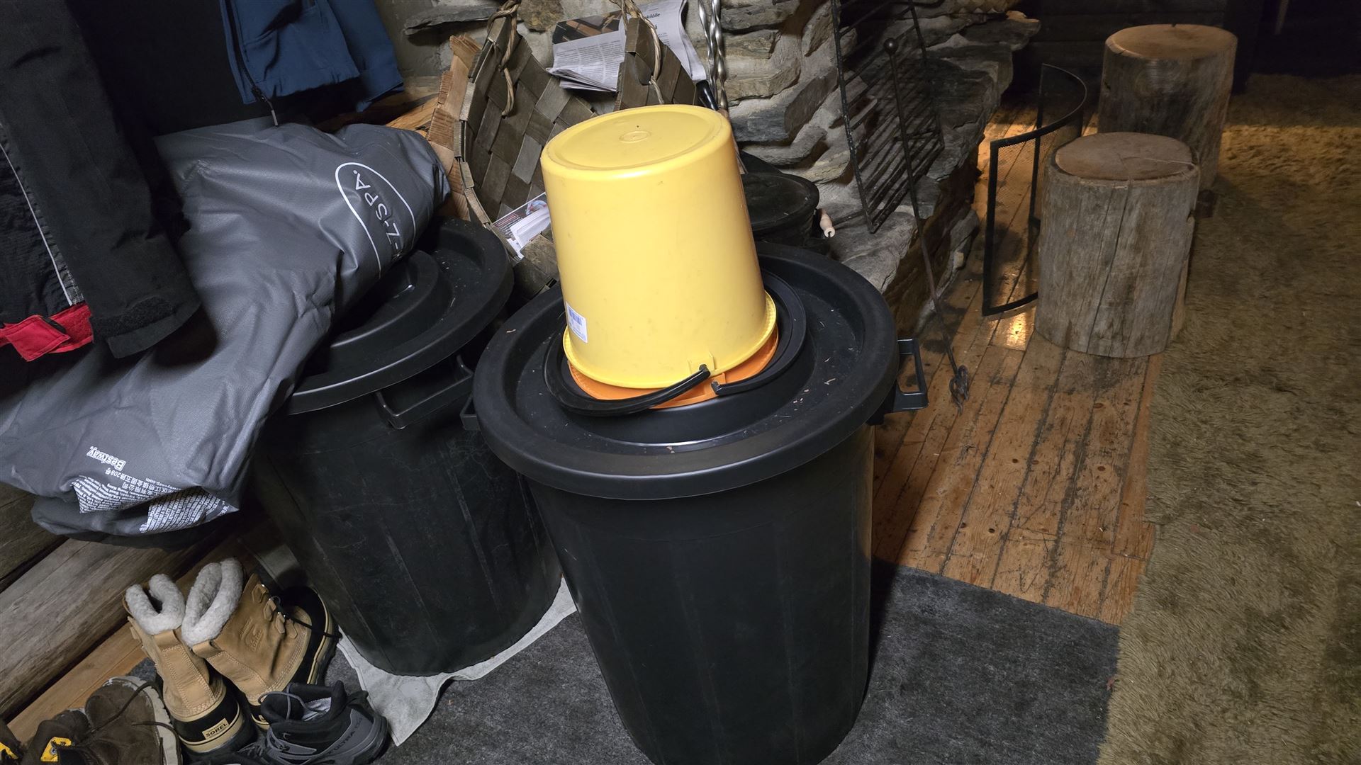 Die ganzen Utensilien, die wir gestern Nacht noch eher theoretisch ins Haus gestellt haben, liegen nun grossflächig verteilt auf dem Boden. Ein Bild irgendwo zwischen „Expedition gerade angekommen“ und „Einbruch mit System“.
