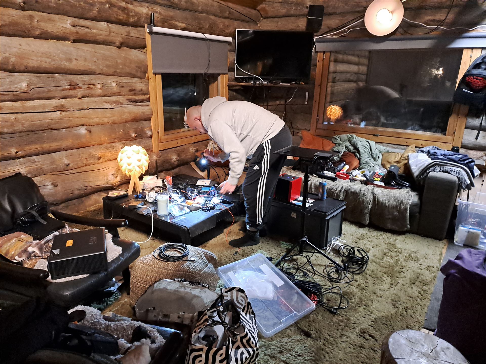 Akkuladestationen für Kameras werden eingerichtet, Kabel sortiert, Geräte zugeordnet – einfach alles, was unser Leben im Kelohovi so besonders macht. Und was wir brauchen, um euch mit unendlich vielen schönen Bildern und Momenten zu versorgen.