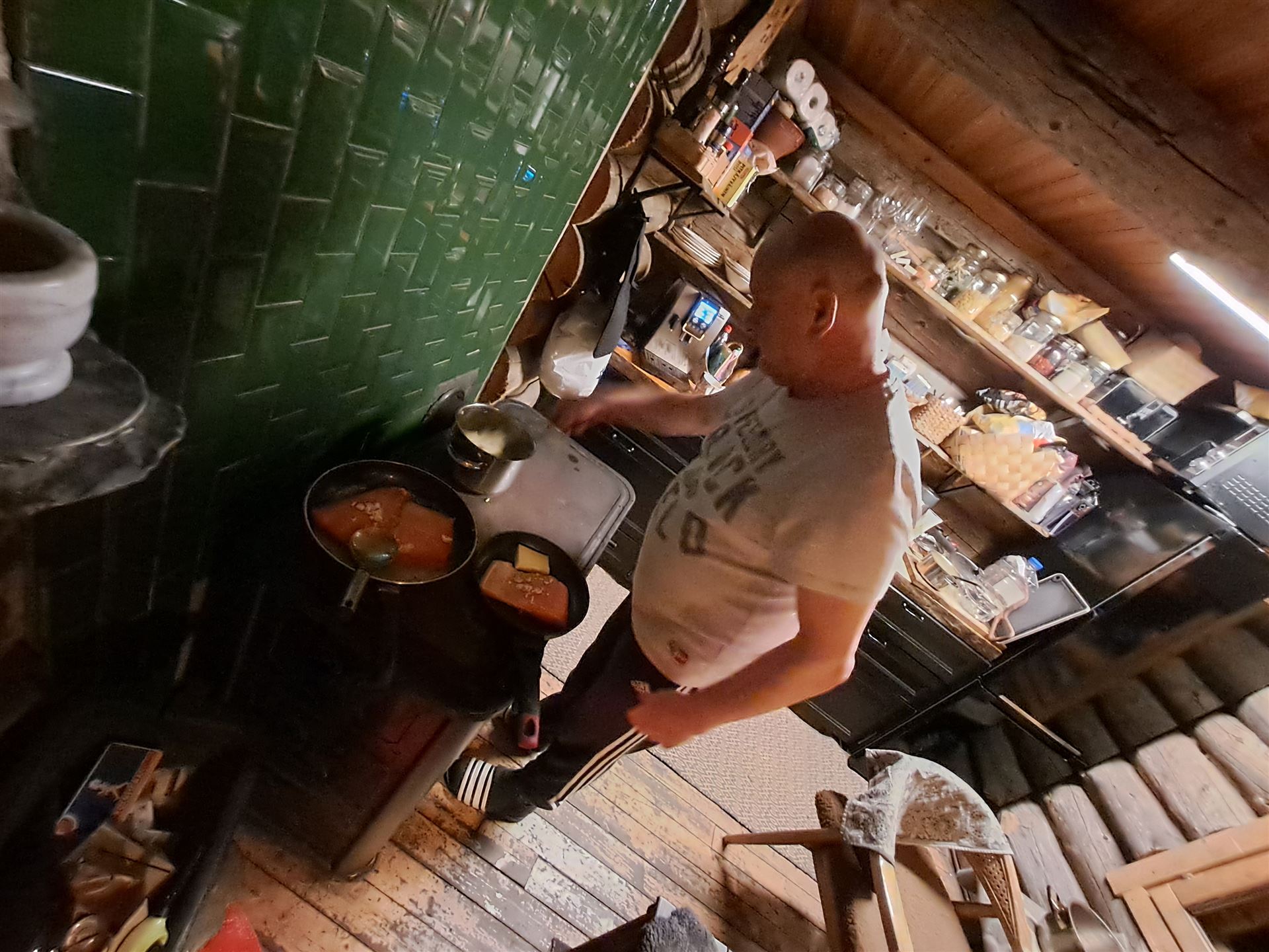 Zu diesem Zeitpunkt hat der Koch den Kampf gegen die Müdigkeit längst verloren.