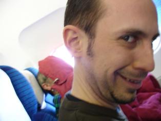 Die Reaktionen blieben nicht aus, unseren Sitznachbarn schien unsere Freude am Urlaubsbeginn nicht besonders zu gefallen... |
