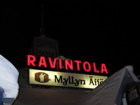 Mit dem Wissen, Morgen bereits nochmals nach Levi fahren zu müssen, um die restlichen Einkäufe zu tätigen, gehen wir zu unserem traditionellen Ravintola und genehmigen uns eine Rentierpizza. |