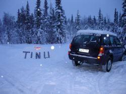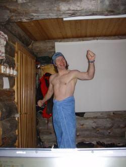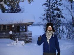 Nachdem all unsere Vorbereitungen für Tinus Besuch nun abgeschlossen sind, versuchte sich Tom mit einer akrobatischen Einlage und balancierte eine Schneeflocke auf der Nase. Von der Sauna bis zu unserer Hütte. |