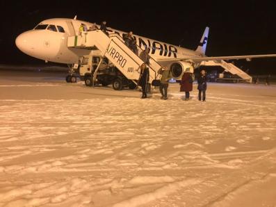 Bei der Zwischenlandung in Helsinki treffen wir auch auf Marcel, der die Crew für`s Kelohovi vervollständigt. Kurz danach nehmen wir Kurs auf Kittilä.