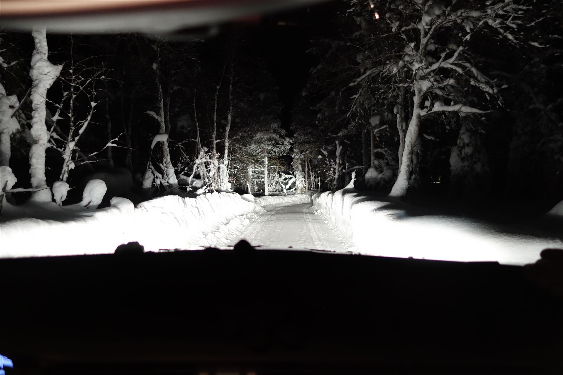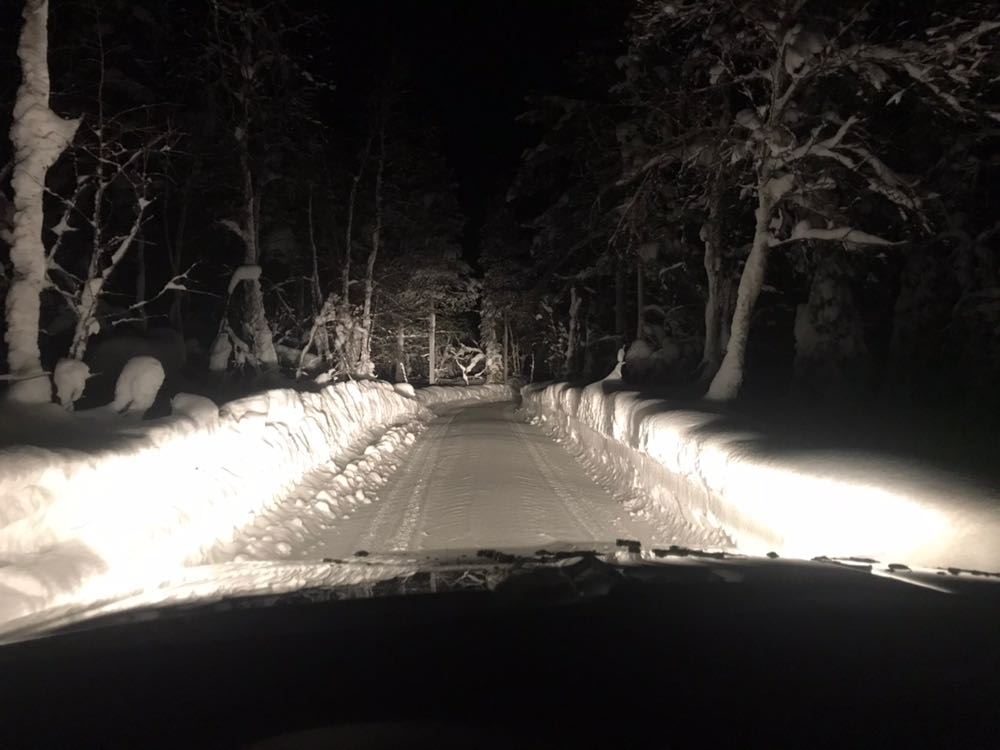Als alte Hasen sind wir schon sehr gut organisiert und steigen umgehend in unser gemietetes Auto für unseren Aufenthalt. Vollgeladen mit unserem Gepäck geht’s durch die verschneite Nacht nach Levi.