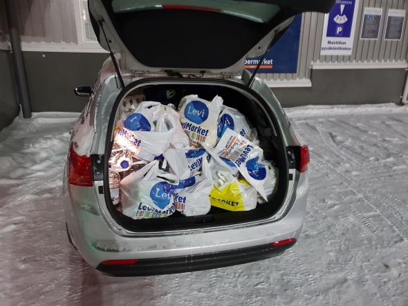 Nach der Landung in Kittilä, und dem ersten grossen Einatmen der trockenen kalten Luft, greift auch schon unser nächstes eingespieltes Ritual. Während Tom auf die Gepäckausgabe wartet, geht Ivo schon mal zur Autovermietung und übernimmt das reservierte Mietauto, dass wir für die nächsten 10 Tage gebucht haben. Ivo Fährt danach einmal um den ganzen Flughafen, und parkt unmittelbar vor dem Ausgang. Zeitgleich kommt Tom mit dem ganzen Gepäck rausgestürmt und innert 5 Minuten sind wir schon unterwegs nach Levi. Für unseren 10-tägiger Aufenthalt im Paradies des Nordens benötigen wir noch etwas an Nahrungsmittel. Der Levi Market bietet alles was das Herz begehrt, und meistens noch etwas mehr, so dass wir noch nie zu wenig hatten.