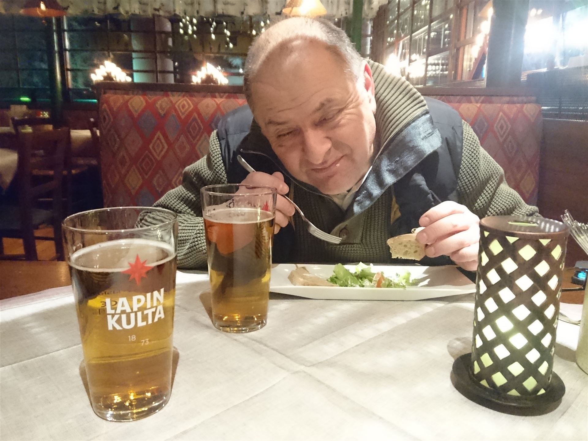 Zum einen weil wir schon eine Weile Unterwegs sind, zum anderen um das erste Lapin Kulta zu geniessen. Obschon das Lokal nur bis 21:00 Uhr geöffnet hat, durften wir liebenswürdigerweise trotzdem um 20:45 Uhr noch unsere Bestellung aufgeben und in Ruhe eine Mahlzeit zu uns nehmen.