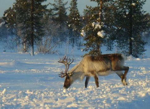 | Keine Menschenseele weit und breit. Dafür bekamen wir Gesellschaft von Rentieren, die uns wunderbar neben unserem Auto im schönsten Trab begleiteten. Das Filmli dazu hier. |   |