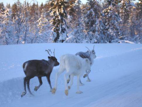 Keine Menschenseele weit und breit. Dafür bekamen wir Gesellschaft von Rentieren, die uns wunderbar neben unserem Auto im schönsten Trab begleiteten. Das Filmli dazu hier. |