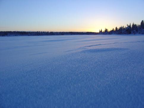 Ein seltenes Bild: Sonnenaufgang auf dem Salankijärvi (extra für Hansjörg früh aufgestanden, damit wir hier auch mal einen Sonnenaufgang zeigen können). |