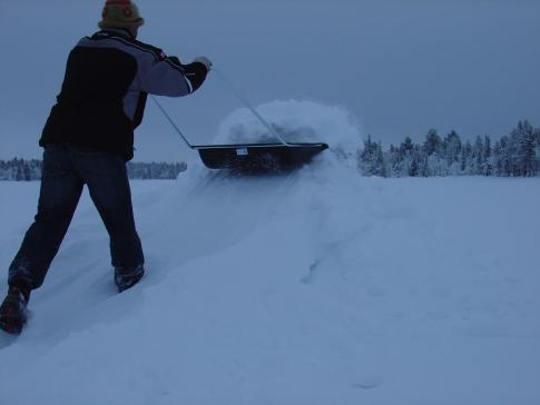 Nach diesem Vitaminschub konnten wir uns dem Eisfeld widmen. Ziel ist nächste Woche die 4. läppische Curlingmeisterschaft auf dem Salankijärvi. Geplant ist ausserdem ein Iglu und eine Schneebar. Wir haben also grosse Ziele! |