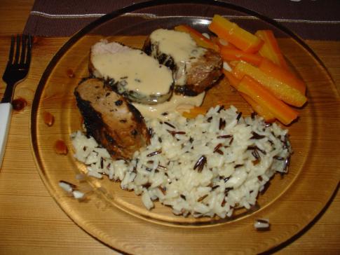 Das erste Nachtessen von Chefkoch Ivo war wie immer grossartig: Schweinsfilet mit Wildreis und Rüebli. |