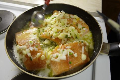 Marcel beginnt nach dem Film sich in der Küche nützlich zu machen. Er bereitet schon mal sämtliche Beilagen vor. Den frischen Lachs übernimmt Ivo und so kommen wir schon das erste Mal in 2017 zu einem kulinarischen Lekerbissen!