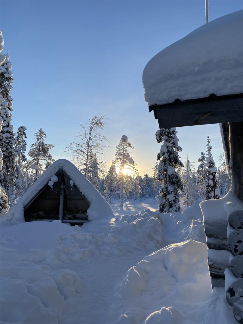 Das erste Erwachen im Kelohovi ist wie Weihnachten und Ostern zusammen. Der Blick aus dem Fenster, der Geschmack vom Feuer und Holz, blendende Sonne, Schnee soweit das Auge reicht. Das gibt uns die definitive Sicherheit wieder im Paradies zu sein.