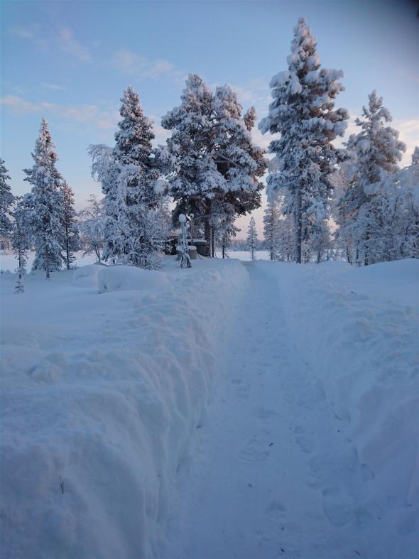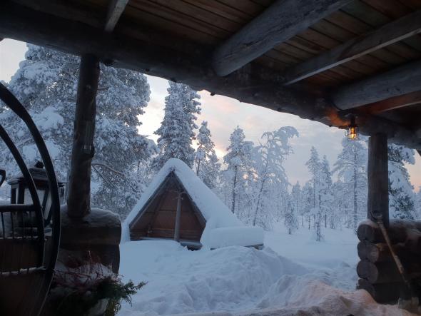 Guten Morgen Lappland, das erste Erwachen im Kelohovi ist immer wieder ein wunderbares Gefühl. Der Blick aus dem Fenster lässt auf einen schönen kalten Tag hoffen.