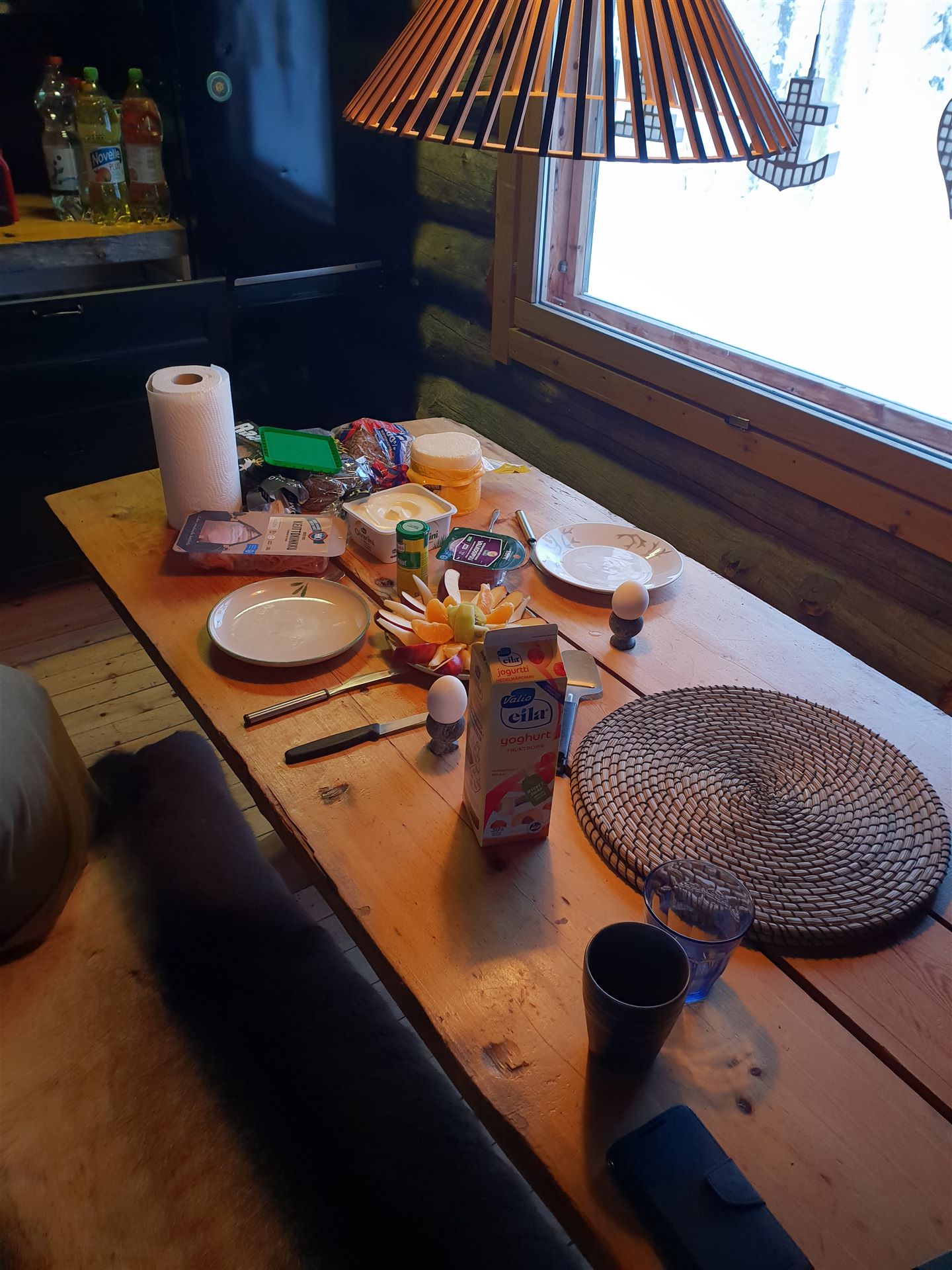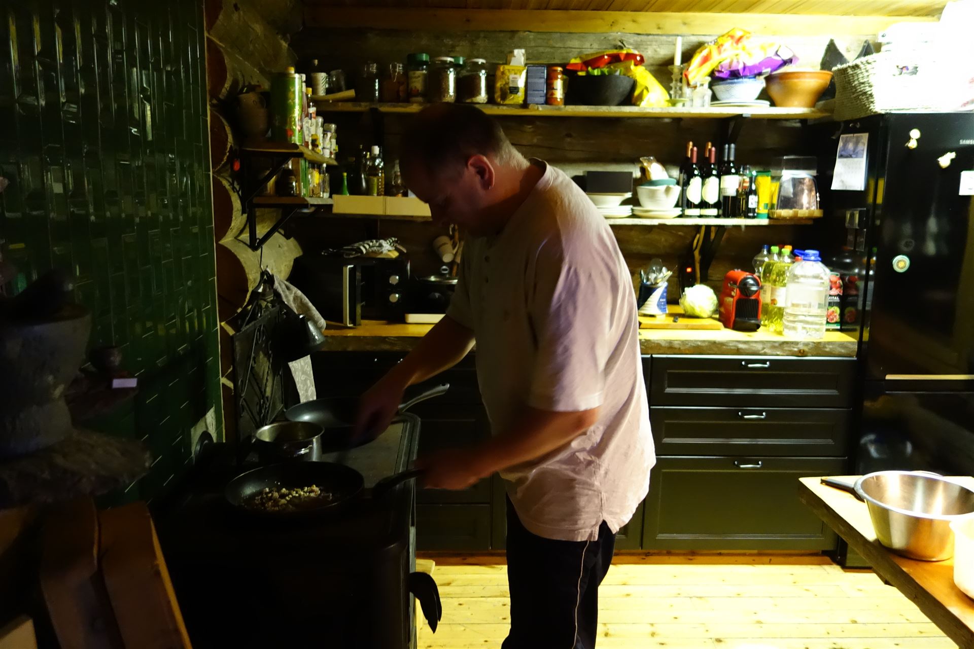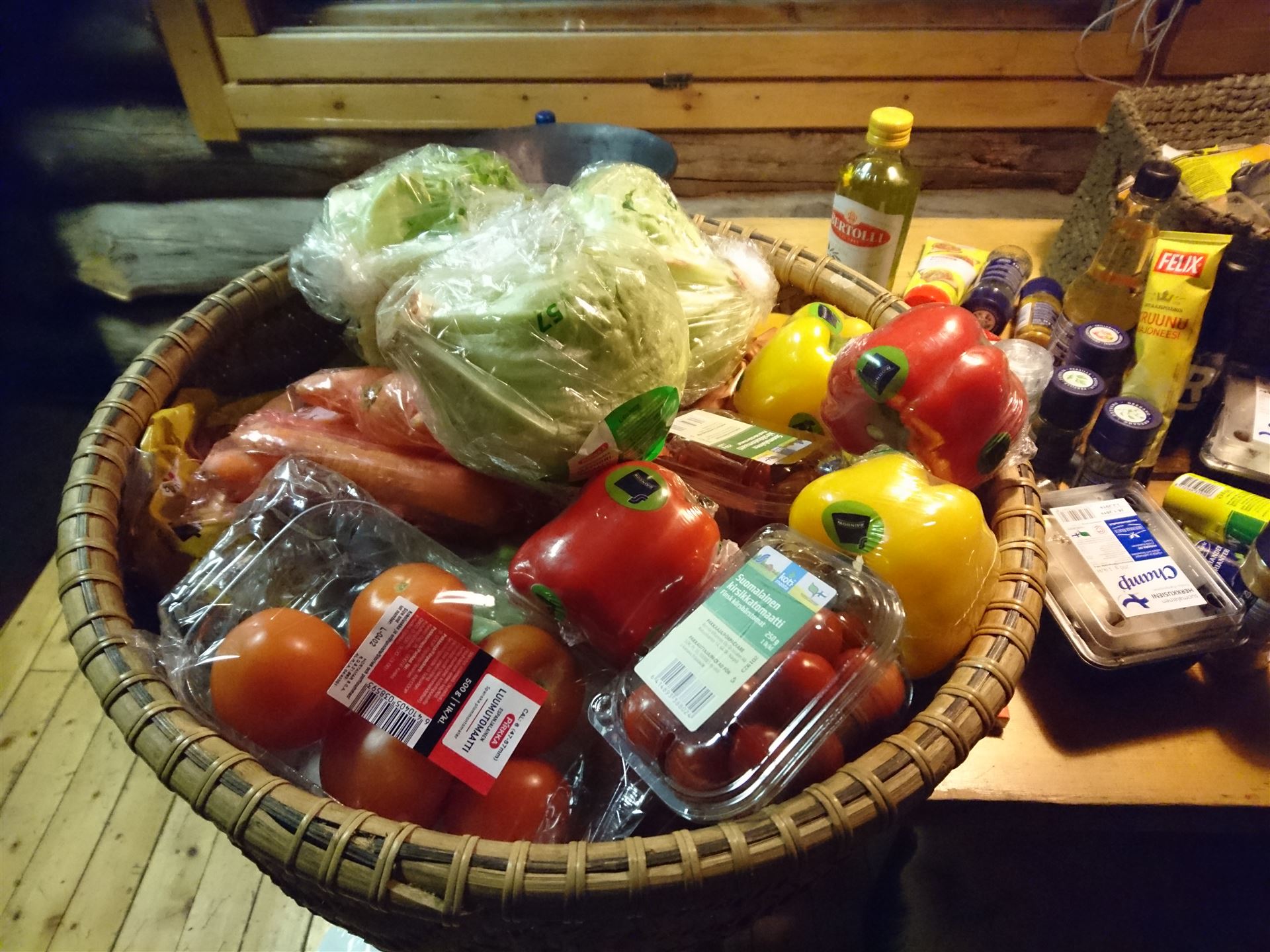 Unsere Einkäufe haben wir noch letzte Nacht provisorisch eingeräumt. Da der Platz im Kühlschrank begrenzt ist, haben wir einen Raumkühlschrank hier im Kelohovi, der Wunsch jeder Hausfrau. Am Boden der Hütte beträgt die Temperatur ca. 3 Grad, ideal um diverse Lebensmittel in Körben zu lagern.