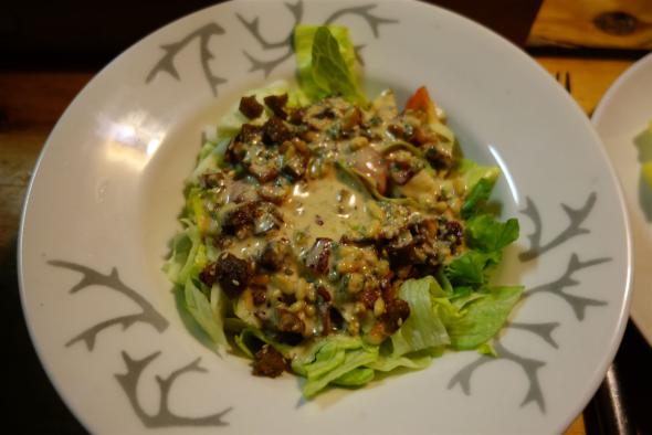 Eisbergsalat und Tomaten, mit einer leckeren Sauce runden unser erstes Menu ab.
