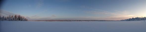 Auf dem Weg zur Sauna, macht Tom noch einen Abstecher und wühlt sich durch den Schnee an den Salankijärvi (Salanki-See). Dabei hält er schon mal mit der Kamera fest, was uns die nächsten Tage erwartet.