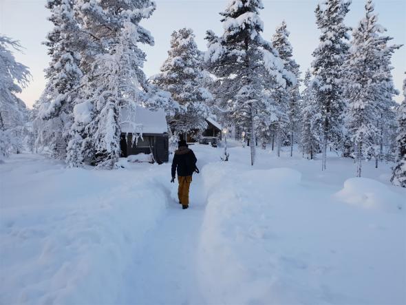 Zurück im Kelohovi sehen wir dann auch, dass die Temperatur massiv unter -20 Grad gefallen ist. Da die einfallende Nacht aber sehr klar wird, gehen wir davon aus heute schon Showtime mit Nordlicht zu erleben.