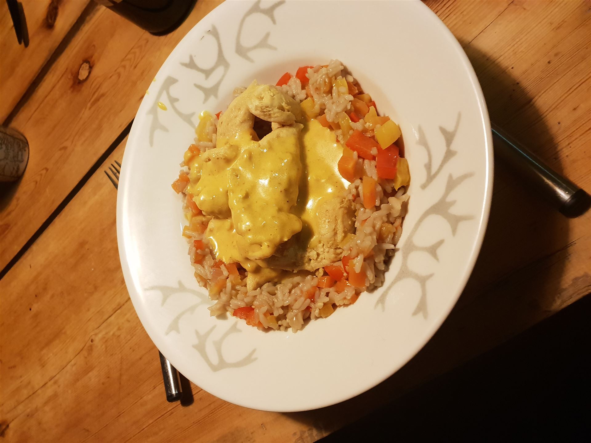 Wenn Fähigkeiten ideal eingesetzt werden, heisst das beim heutigen Menu folgendes: Der Schnitzelmeister geht dem Hobbykoch zur Hand und schnippelt das Gemüse für den angedachten Gemüsereis. Eine leckere Currysauce brutzelt auch schon vor sich hin, und wird zusammen mit den Hühnchen-Filets unser heutiges Essen kompletieren. In Kombination mit Kochen und dem Hockeyspiel SCRJ-ZSC zaubern wir zusammen in Kürze ein Essen auf den Tisch. War auch nicht wirklich schwierig, konnten uns ja schliesslich nach dem ersten Drittel sehr gut aufs Kochen konzentrieren.