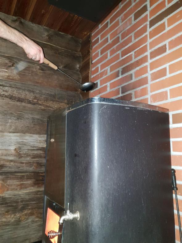 Frisch gewaschen und wie neu geboren löschen wir als erstes mit finnischem Spezial-Wasser unseren Durst. Anschliessend nehmen wir mit einem Glas Single Malt auf unseren bequemsten Plätzen im Kelohovi platz.