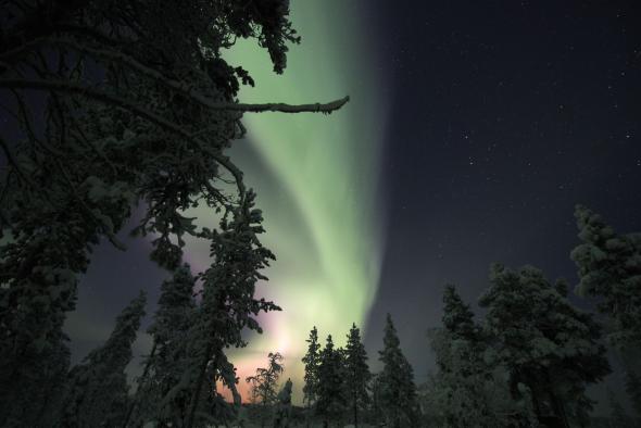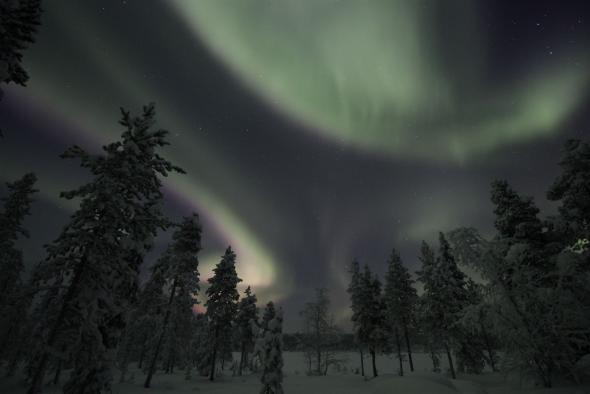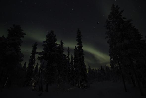 Die Voraussetzungen sind gut: sehr kalte Nacht, klare Sicht zu den Sternen und kein störendes Mondlicht. Wir gehen wir davon aus, die ganze Nacht diese Lappland-Disco geniessen zu können.