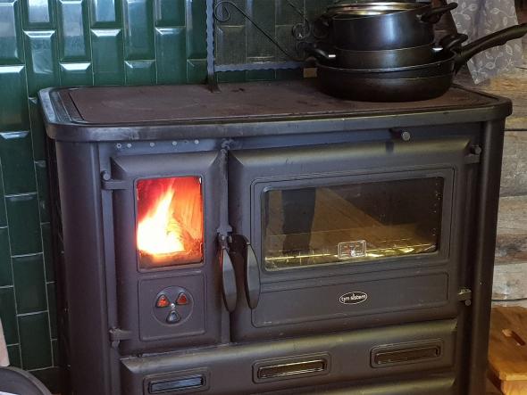 Nordlicht hin oder her, essen müssen wir trotzdem. So beginnen wir unseren Kachelofen auf Betriebstemperatur zu bringen, damit wir langsam mit unserer Vorbereitung der Hauptmahlzeit beginnen können. Ein funktionierender Kachelofen ist im Übrigen eine tolle Sache zum Kochen.