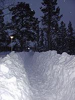 Es hat schon wieder die halbe Nacht geschneit. Eigentlich wollten wir heute nach Levi unsere Vorräte auffüllen, aber jetzt geht nix mehr mit Autofahren. Den Weg zur Sauna haben wir selbst in Angriff genommen, damit wir am Abend wenigstens dorthin kommen. Für die Zufahrt zur Strasse müssen wir weiter auf die Schneeschnützi hoffen. |