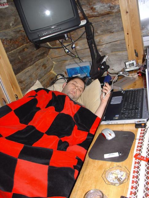 Und dann gehts hopp hopp ins Bett, Morgen holen wir unseren Kollegen Blatter am Airport in Kittilä, er wird ein paar Tage bei uns verbringen (wenn er es aushält). |