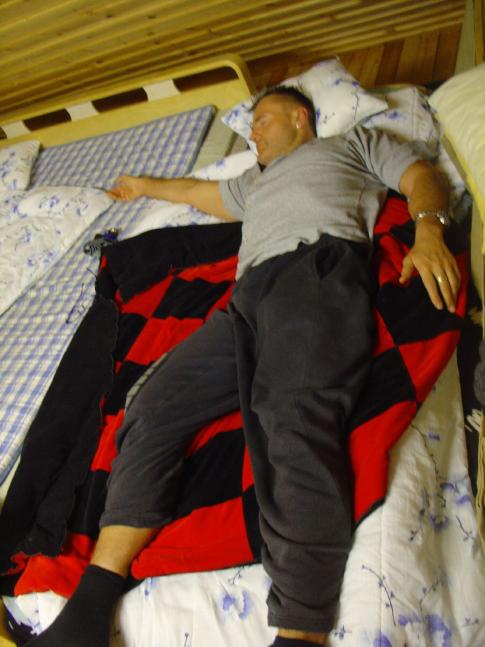 Nach der obligaten Saunasession um Mitternacht, wo Roger eine rekordverdächtige Sitzung hingelegt hatte folgte im Kelohovi-Kino zur nocturne noch "The cleaner". Während des Films grillierte Tom noch einen Satz Kabanossi Speciale mit Knobli. Gegen halb Fünf gingen dann die Lichter in Kelohovi langsam aus. "Gute Nacht John-Boy." |