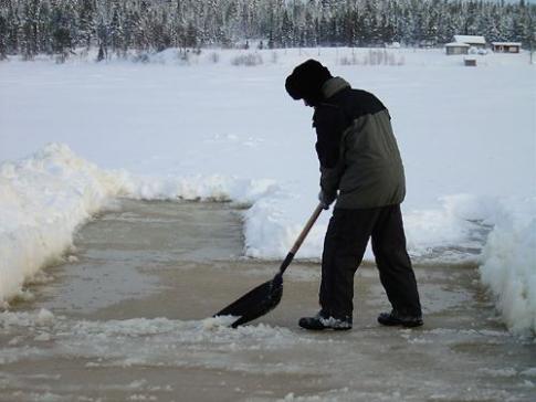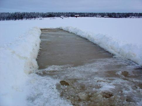 Doch das hat uns nicht davon abgehalten die Arbeiten am Curlingfeld voranzutreiben. Die Eisverhältnisse dieses Jahr sind nicht zum Besten bestellt. Es gibt noch viel zu tun, damit die 2. finnischen Curlingmeisterschaften nächste Woche planmässig stattfinden können. Wir werden heute den Eisgott noch beschwören... |