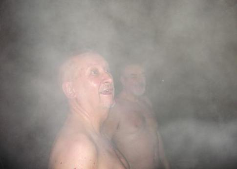 Achtung, hier die ersten Saunabilder. Viel Dampf und viel Freude! Danach gabs dann wieder die obligate Kabanossi und einen DVD der mnozil-Brass Band. Wir warten immer noch voller Vorfreude auf das Nordlicht. Leider bisher vergeblich. Dafür hier noch die Mitteilung des Tages für alle langjährigen nohoro-Anhänger: Heute war sie da, die Schneeschnützi!! So jetzt ist es halb vier Uhr in der Früh und wir begeben uns langsam auch ins Bett. |
