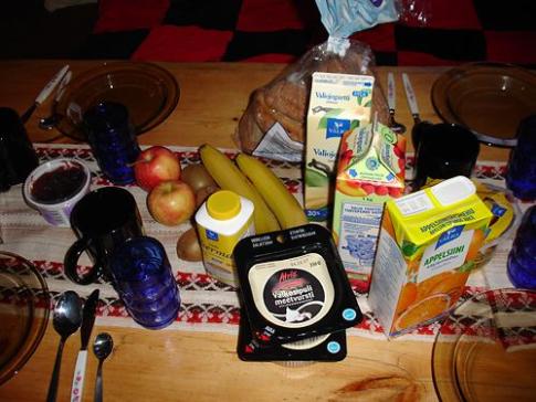 Der heutige Tag mit dem üblichen Frühstück. Nachdem die gestrige Sauna die letzte Energie aus unseren Körpern raubte, hatten wir keine Kräfte mehr unsere tägliche Kabanossi zu geniessen. |