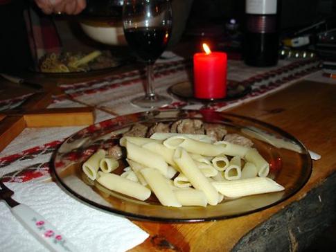 Rindsgeschnetzeltes mit Penne à la Hans von Anfang bis Ende improvisiert. Herr Lindeman hat seinen Syrah dazu produziert. Ein weiteres Gourmetmenü hat somit den Eingang in unsere Mägen gefunden. |