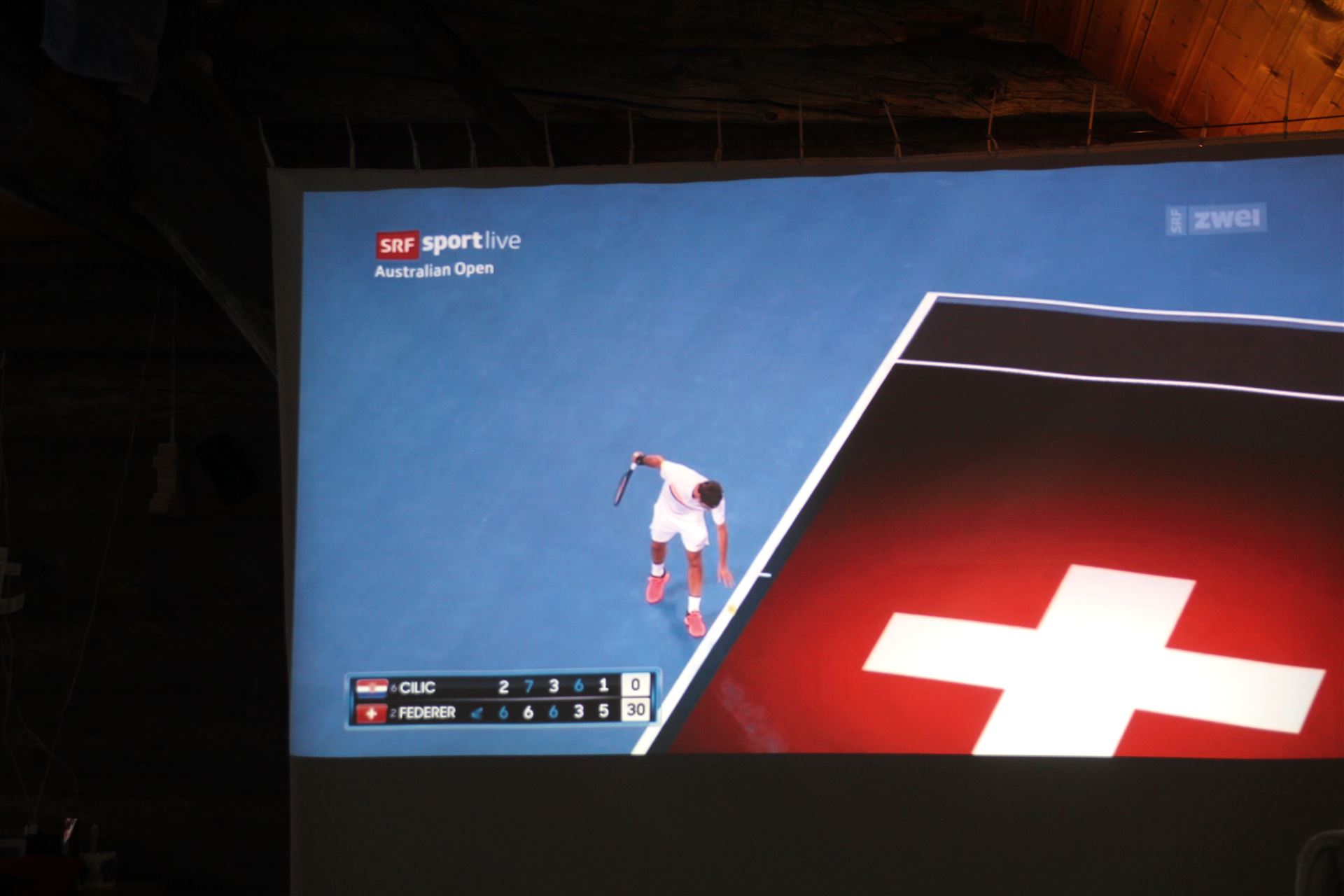 Pünktlich 09:30 Uhr sitzen wir vor unserer Leinwand, im tief verschneiten Salanki. Im lappländischen Nirgendwo, mit einer unglaublichen Technik, dürfen wir uns über Proxy und VPN auf SRF das Finale Tennisspiel von Federer vs. Cilic anschauen.