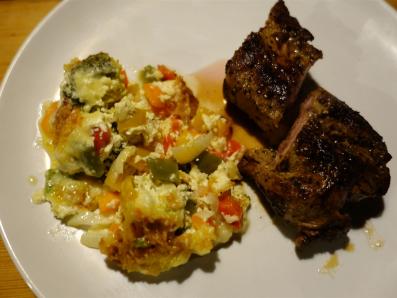 Wir unterbrechen die Staffel kurz, damit wir unsere heutige Hauptmahlzeit zubereiten können. Schweinefilet vom heissen Stein mit einem Gemüsegratin. Das Menu ist einmal mehr vorzüglich und wir geniessen es mit einem feinen Tropfen Chianti.