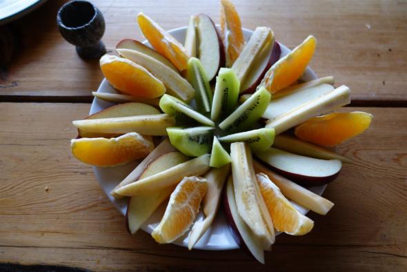 Der heutige Sonntag beginnt sehr gemächlich. Ein bisschen Entspannung muss dann doch sein im Urlaub. Wie gewohnt erfreuen wir uns an einem gut bestückten Frühstückstisch. Vor-und während des Frühstück wechseln wir noch unglaublich wichtige Informationen aus, bevor wir uns mit gefüllten Kaffeetassen von der Küche ins Wohnzimmer begeben.