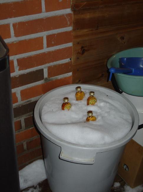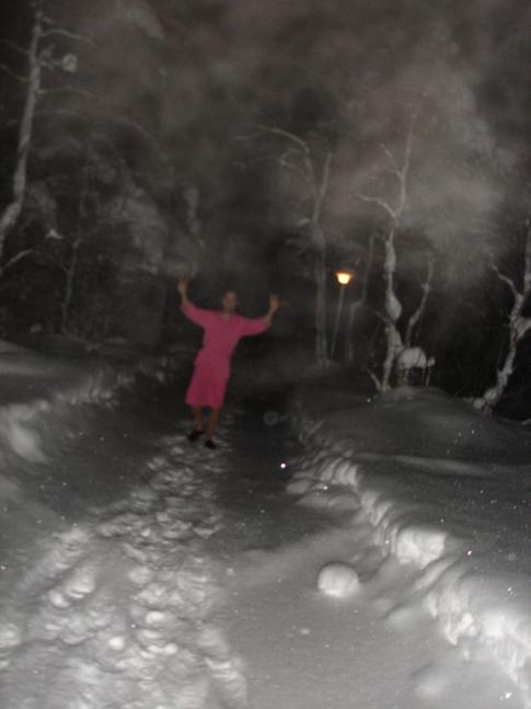 Der erste Gang ist mit einem Sprung in den tiefen Schnee berreichert, und sofort wieder in die Sauna. Premiere... jeder der Kelohovi`s springt ins tiefe Weiss. |