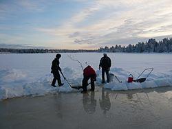 Da die beschaffenheit eines Curlingfeldes und dessen Eis dehr fein sein muss, haben wir Gruppenarbeiten verordnet. Die eine Gruppe war dafür besorgt, das Eis mittels Pusste auf die wichtige verarbeitungstemperatur von -16,9 Grad zu bringen. |