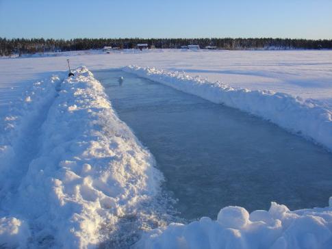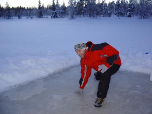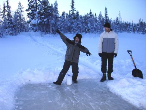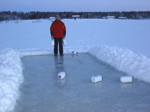 Heute war es soweit: Beim schönsten Wetter konnte die erste lappländische Curlingmeisterschaft stattfinden. Die Eisbahn war in hervorragendem Zustand und die Teilnehmer in hochform. |