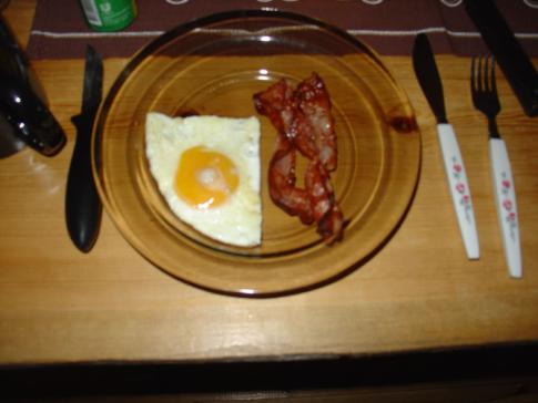 Dazu Spiegelei und gebratener Speck. So waren wir wieder bereit fürs Eisfeld. |